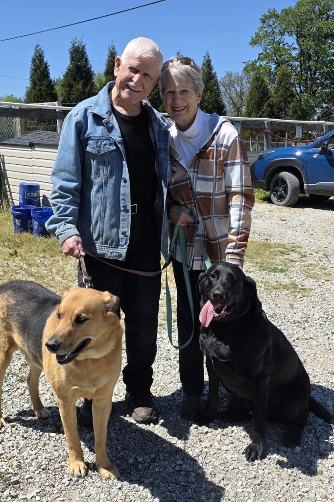 After Cato died, we told Denise Merricks, who boards and trains dogs at her center in Tye River and is currently the head of our county’s SPCA, that we were open to a second dog who needed a home like ours. We also told her that we were too old for a puppy and would not take another troubled dog. But when Denise saw this four-year-old, 105-pound Yellow Lab-Shepherd mix, she sensed he was a good match for us. And she was right.