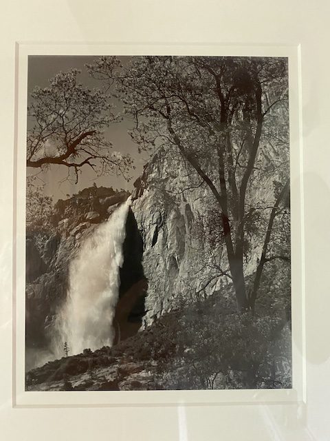 Fifty years ago, I accompanied my first husband, an avid photographer, to the Ansel Adams Workshop in Yosemite. Adams was a kindly man, still taking photographs with his huge view camera but no longer able to manage the subtleties of printing due to age and arthritis. This photograph, printed by one of his assistants, was therefore affordable to us when we purchased it from the now-defunct Friends of Photography in the 80s.